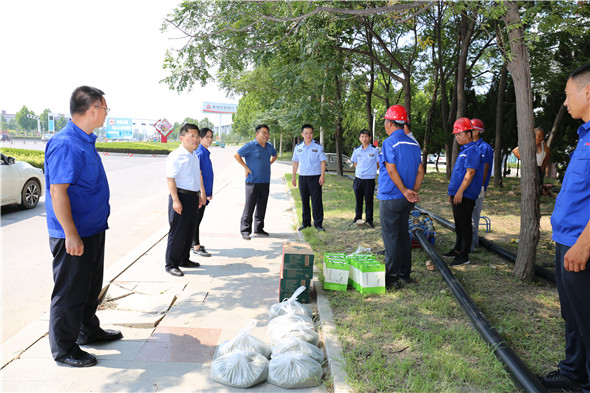 7月20日上午,润禹水务有限公司党支部书记、董事长、总经理魏永生同志带领部分领导班子成员,来到南郡华府、高速交警、城角韩社区等施工工地,慰问冒着酷暑奋战在工地第一线的施工人员,并送来防暑降温用品。