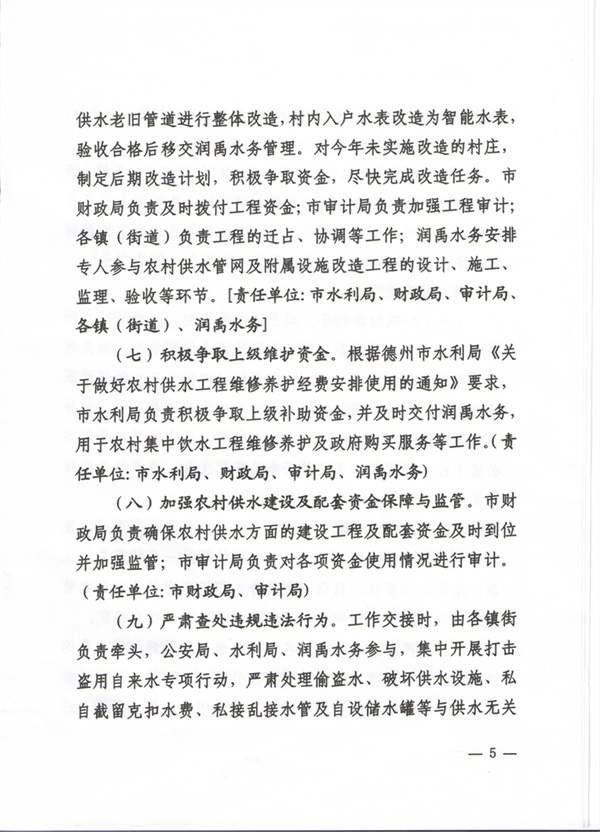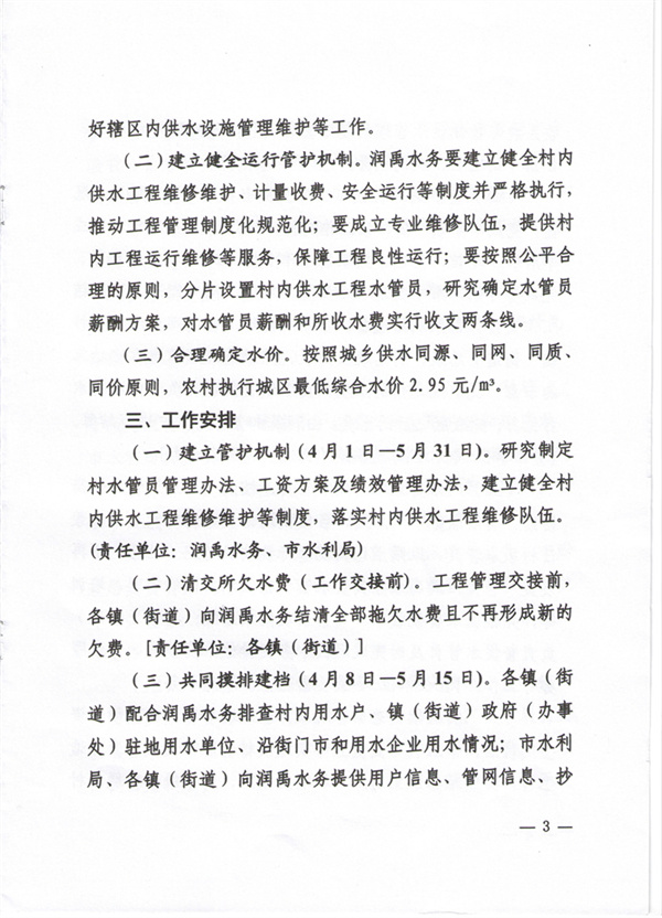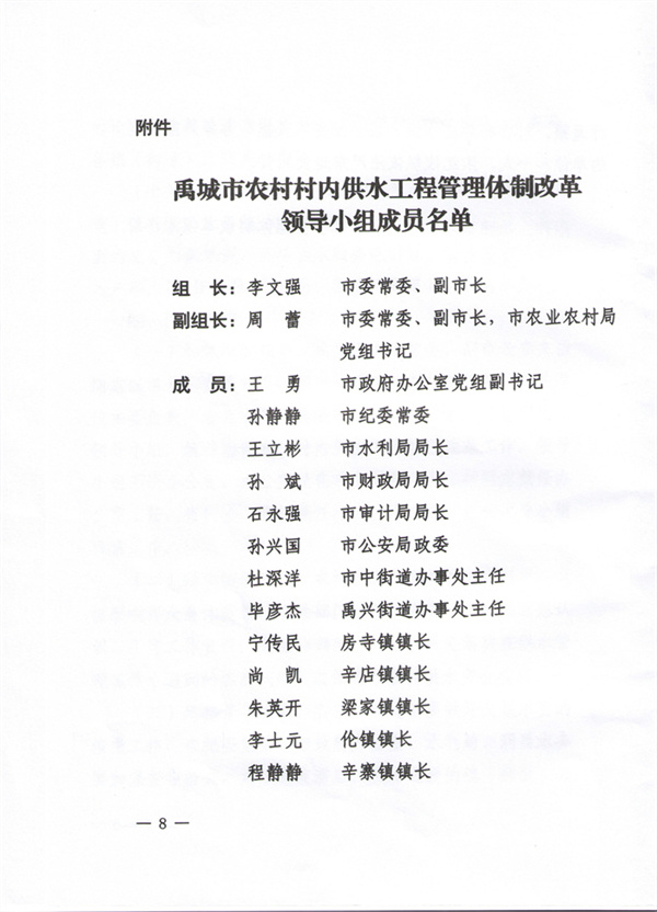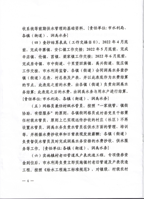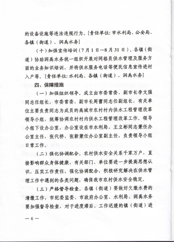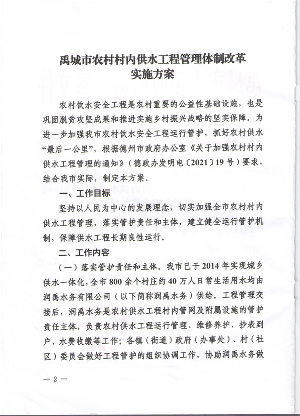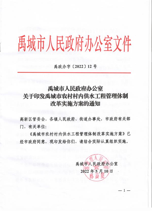 关于印发禹城市农村村内供水工程管理体制改革实施方案的通知(禹政办字【2022】12号)