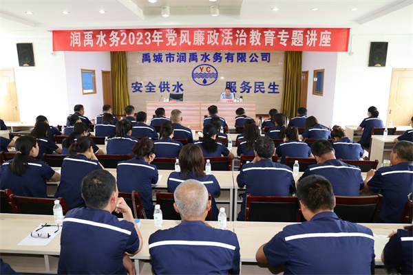 为全面贯彻落实党的二十大精神,持续深入推进全面从严治党,强化党风廉政法治建设,教育引导公司党员干部职工切实提高廉洁自律意识,进一步营造“大干2023”的良好氛围,7月19日上午,市润禹水务有限公司举办党风廉政法治教育专题讲座,邀请市纪委监委党风政风监督室主任陶金飞同志前来授课,公司党员干部职工90余人参加了专题讲座。陶金飞主任以落实中央八项规定精神、持之以恒纠治“四风”为主题,以实际典型案例为镜鉴,深入浅出地列举了违规宴请、收受礼金、公款私用等事例。详细解读了形式主义、官僚主义、享乐主义、奢靡之风的表现形式,警示党员干部职工对党纪国法要时刻保持一颗敬畏之心,常敲廉政警钟,筑牢拒腐防变的思想道德防线。同时结合国企行业特色,为大家日常工作中依法履职、廉洁从业提出了宝贵建议。其授课内容全面系统、逻辑严谨,具有很强的政治性、思想性和针对性,对公司坚决落实全面从严治党政治责任,坚持依法治企、强化合规运营具有重要的指导作用。通过聆听讲座,与会人员纷纷表示,今后将进一步坚定理想信念,防微杜渐、警钟长鸣,牢固树立底线思维和红线意识,坚守为人民谋福祉、为百姓解忧难的初心,为全市经济高质量发展积极贡献力量。(宣传科)