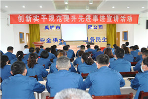 5月21日下午,市润禹水务有限公司召开创新实干规范提升先进事迹报告会,特邀通裕集团锻压厂张峰峰同志和山东省劳动模范、市供电公司高级工程师李琛同志作先进事迹报告,公司100余名职工参加活动。