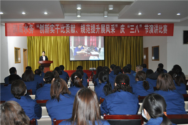 万象更新春意浓,奋马扬鞭正当时。为激发广大女职工弘扬“自尊、自信、自立、自强”的精神,3月8日润禹水务有限公司精心组织开展以“创新实干比贡献,规范提升展风采”为主题的演讲比赛活动,营造公司女职工共创佳绩、共展风采、共建和谐的浓厚氛围。