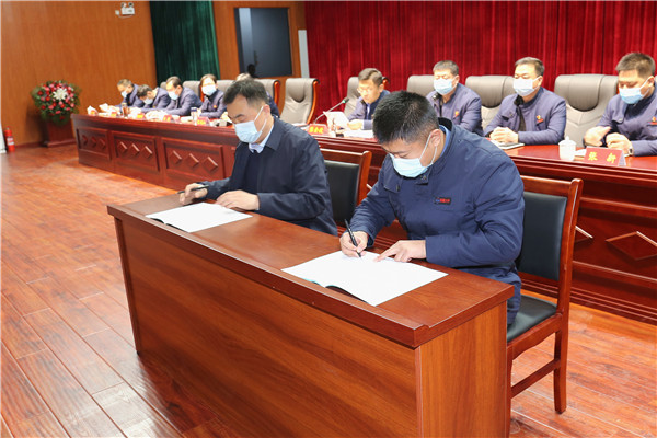 会上,李卫东同志代表公司领导班子与公司部分科室签订了《重点工作及安全生产目标责任书》,部分科室负责人作了表态发言。(宣传科)
