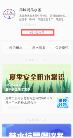 一、打开微信、点击通讯录、找到公众号点击“+”搜索禹城润禹水务、关注禹城润禹水务公众号。
