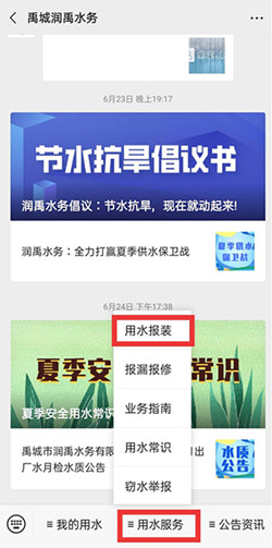 为深入贯彻落实《关于持续深入优化营商环境的实施意见》(鲁政字【2020】67号文件)精神,打造精简高效服务平台,优化营商服务环境,润禹水务公司深入开展“一次办好”、创新开展“三零服务”(零跑腿、零资料、零延迟)。对公司微信公众号和企业网站进行全面升级,实现“掌上办”和“网上办”供水报装业务。