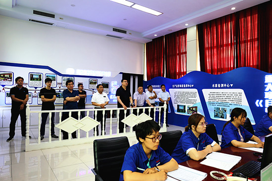 首先,双方人员进行座谈,就水厂生产运行管理、水源地安全措施、水质检测制度、管网巡检与维护、管网抢修、农村供水运营模式、收费管理、供水服务等工作进行深入交流与探讨。随后,实地参观了生产运营调度指挥中心、第三水厂净水车间、一体化处理车间、水质化验中心等重点生产部门,详细了解生产管理及运行情况。
