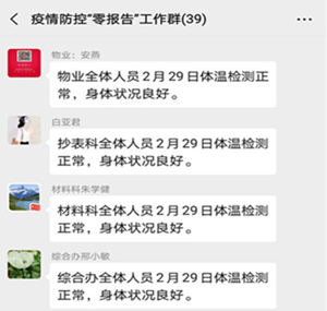 一、严格执行“日报告”。建立疫情防控“日报告”工作群,由各科室负责人每日按时将本科室人员身体状况如实上报,确保公司全面了解职工健康状况,做到公司内部全覆盖、零死角。