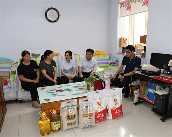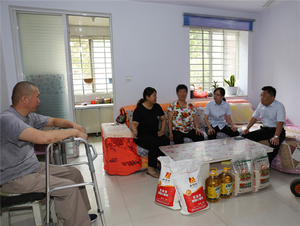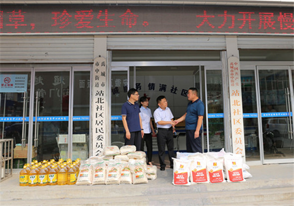 在中秋佳节来临之际,为充分发挥共驻共建作用, 情暖社区, 关爱困难群众, 9月10日下午,润禹水务有限公司 副经理张金波、王敏、杨志秀等一行六人来到站北社区,为该区14户低保户送去大米、面粉、油等价值4000余元的慰问品,并到窦美德、郭佐庆两户因病致困的低保户家中现场走访,并送上油、米、面等慰问品。 在走访中,与他们亲切交谈,了解他们生活的状况和现实问题,叮嘱他们保重身体,积极面对生活中的困难,让他们真正感受到社会大家庭的温暖。