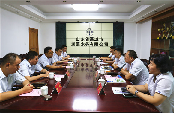 8月14日下午,邹城市自来水公司一行六人来到禹城市润禹水务有限公司考察交流工作,重点针对智慧水务、抄表收费、管网维修等内容进行互相学习,公司董事长、总经理魏永生及相关分管负责同志陪同座谈并现场参观。