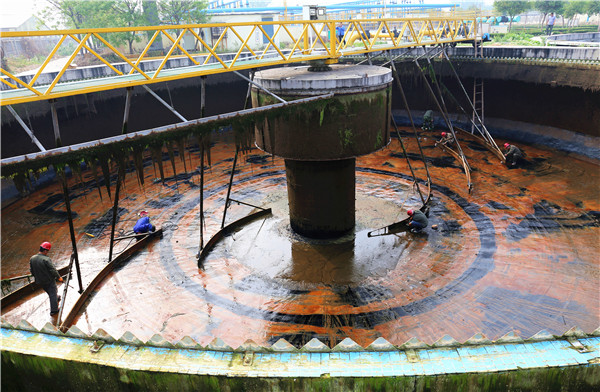 为确保污水处理设备的高效运行,4月21日至25日,污水厂机修班组加班加点,分别对污水厂一期、二期四个二沉池进行了放空检修,共更换行走轮99个,并对水下支架进行焊接加固,有效保障设备正常运行,确保出水达标排放。(王祥华)
