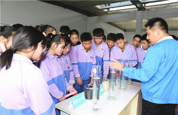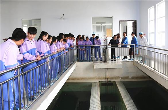 当日下午,公司邀请市实验中学部分师生到第三水厂,参观臭氧预处理池、絮凝沉淀池、石英砂滤池、臭氧接触池、活性炭滤池、臭氧发生间、消毒间、二级泵房等供水设施,并由水厂负责人为大家详细介绍制水工艺、生产流程,让大家了解到从原水到出厂水的制水全过程,亲身体会到自来水的来之不易,也对全市供水安全及水质保障有了深入认识,学生们纷纷表示,以后生活中一定珍惜爱护每一滴水,养成良好的节水习惯。随后,学生们来到糖城广场,自发加入节水宣传队伍中,与润禹水务志愿者们一起向市民们发放《节约用水常识》宣传单1000余份。