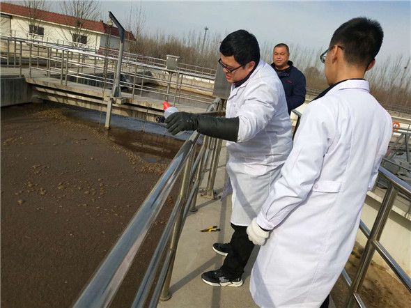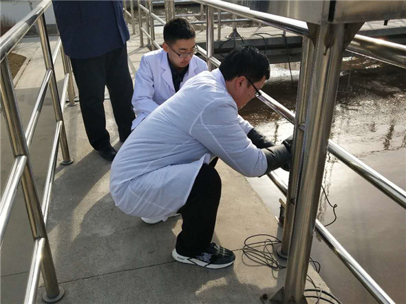 二是对在线仪表维护保养。在线仪表对实现污水处理过程中的实时控制,特别是监测各工艺段参数,起到至关重要的作用。2月19日,城西污水厂化验室刘坤和王凯歌对生化池在线仪表进行了保养。检查内部管路是否通畅,仪器自动清洗装置是否运行正常,并对电极探头进行清洗。