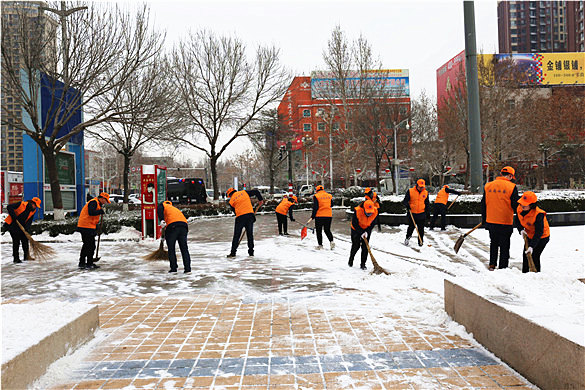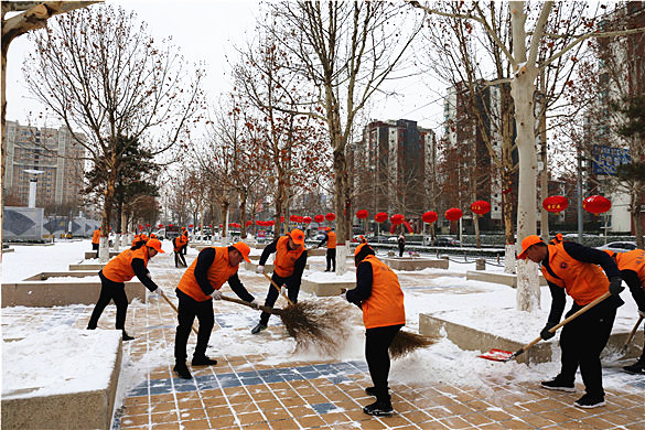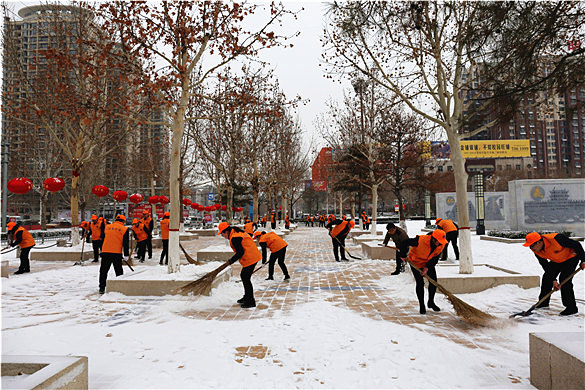 2月14日,我市普降大雪,大地万物到处是玉树琼花的美景,厚厚的积雪在给人们增添乐趣的同时,也给居民出行带来极大不便。润禹水务有限公司志愿服务队紧急部署、积极行动,组织40余名志愿服务者到人员活动密集的广场街道进行义务扫雪,为广大市民安全出行提供便利。