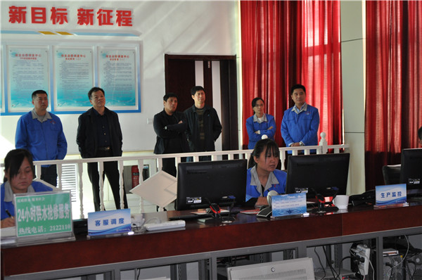 10月26日上午,梁山水务有限公司总经理吴宝德等一行四人来到禹城市润禹水务有限公司,就GIS系统建设、工程管理等工作进行学习交流。座谈会上,双方人员就相关内容进行了深入交流和探讨,随后实地参观了润禹水务公司的客户服务大厅及调度中心,该方负责人详细了解信息自动化平台建设及运行情况。图为工作交流现场。(程利敏)