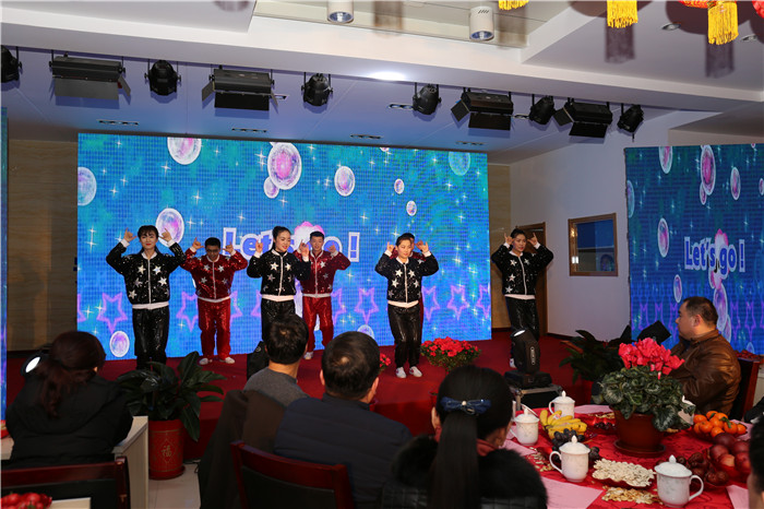 19时整,晚会在《欢聚一堂》开场舞中拉开序幕,欢快的舞蹈、跃动的旋律、愉悦的氛围感染着每一位在场的观众。歌曲《美丽心情》唱出年轻人们辛勤耕耘、沐浴阳光、传播幸福的亮丽心情。快板《撸起袖子加油干,润禹公司换新颜》节奏明快,铿锵有力,讴歌了新时代供水人全心全意为人民服务的精神和为供水事业拼搏的决心。小品《安全培训》用生活中的实例为大家展现增强安全意识的重要性和紧迫性。相声《追求幸福》诙谐幽默、妙语连珠,热烈的掌声和笑声一次次把晚会推向高潮。晚会还进行了有奖竞答等互动节目,广大干部职工及家属们踊跃抢答,积极参与,其乐融融。