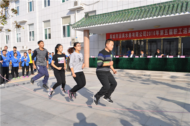 10月14日上午,禹城市润禹水务有限公司第一水厂厂区内人头攒动,该公司第五届职工运动会隆重举行。此次运动会历时两天,设有篮球、拔河、跳绳、接力跑、乒乓球、羽毛球等10大类竞赛项目,公司包括水厂、污水厂、安装公司、维修公司、调度中心、化验中心、农村供水部等部门参赛人员186人,报名达369人次。