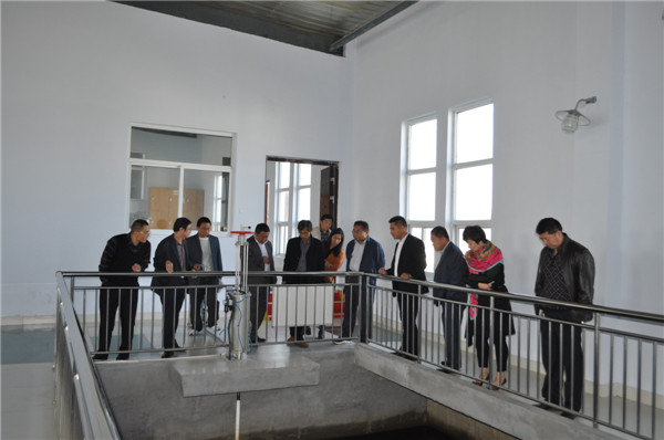 3月2日,安丘市自来水有限公司来我公司考察交流学习,图为公司总经理魏永生同志陪同来访人员参观第三水厂综合净水车间。