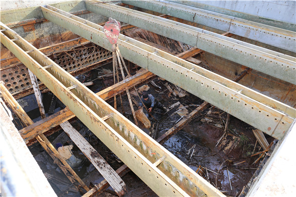 近期,润禹水务对污水厂絮凝沉淀池进行了更新改造,将池中导流斜板全部更新,对池中钢骨架更新加固并做防腐处理。