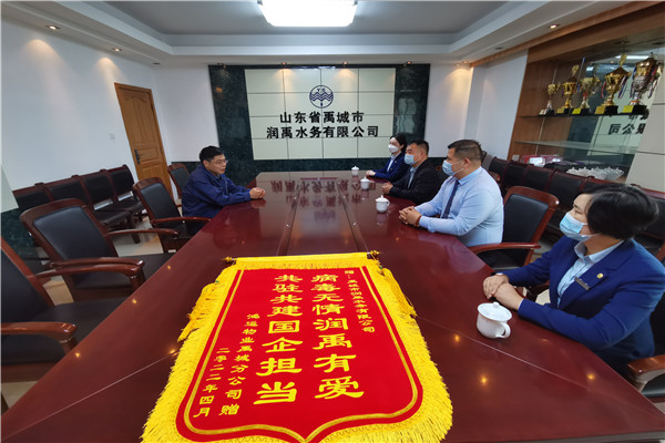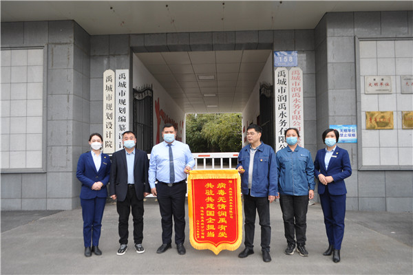 病毒无情润禹有爱,共驻共建国企担当。4月6日下午,禹城市中央公馆小区鸿运物业公司为润禹水务有限公司送来锦旗,对润禹水务广大党员干部职工在疫情期间不分昼夜、冲锋在前、坚守一线,严防死守筑牢小区疫情防线的担当作为表示衷心感谢。