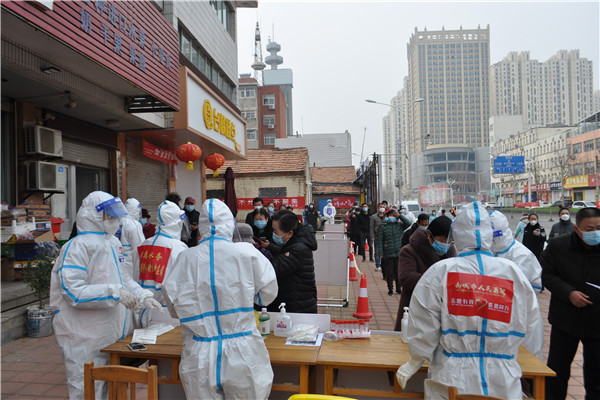 很多职工由于需要不停地大声说话,嗓子变得沙哑,但他们却顾不上喝一口水,仍争分夺秒地引导居民有序排队,帮助大家顺利完成检测。接受检测的居民说,坚守在寒风中的润禹人用行动守护着大家,带给大家别样的温暖。