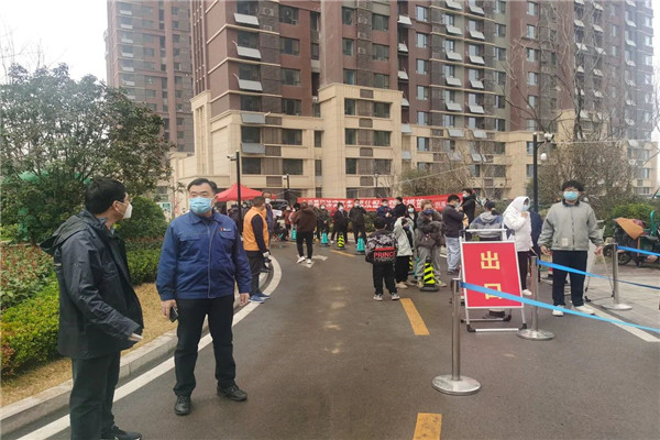 样本采集工作,自下午2:30开始,为保障检测工作顺畅有序,防止交叉感染,采取每栋楼、每个单元通知进行的方式,尽最大努力减少现场人员等待时间和等待人数。工作人员分工明确,有的检测体温,有的登记编号,有的组织人员分流,对年龄大的老人和小孩,安排专人帮扶引导,检测现场秩序井然,有条不紊,有效保障样本采集检测效率。整个检测工作于12日深夜23时顺利完成。