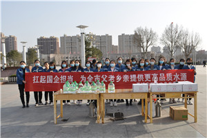 初春暖阳,温暖如煦。为增强全民饮水健康意识,倡导健康生活方式,3月8日下午,在第112个“三八国际妇女节”到来之际,润禹水务有限公司女职工在糖城广场开展“扛起国企担当,为全市父老乡亲提供更高品质水源”主题志愿宣传活动,公司30余名女职工参加了活动。