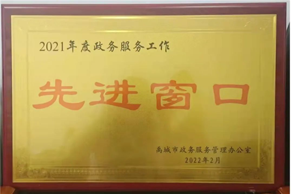 润禹水务荣获2021年度政务服务工作“先进窗口”荣誉称号